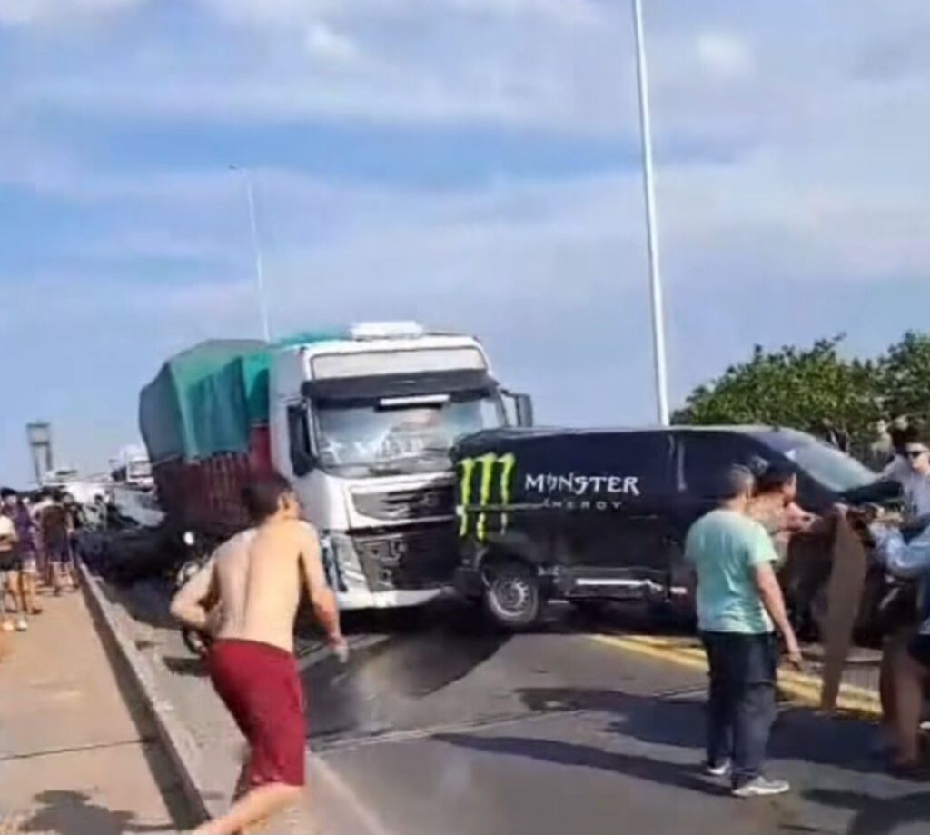 El incidente vial se produjo en la bajada del puente del lado chaqueño, cuando un camión hacía el trayecto desde Corrientes hacia Resistencia, por circunstancias que se investigan arrolló desde atrás a varios vehículos que circulaban a una velocidad menor.