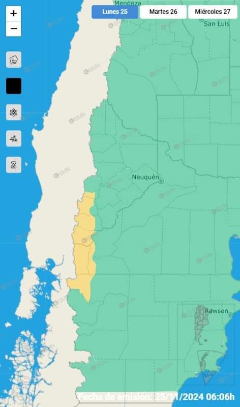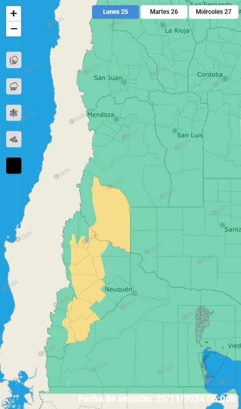 Alerta nivel AMARILLO por VIENTO ZONDA. El área de Neuquén será afectada por viento Zonda, con velocidades de entre 35 y 50 km/h, y ráfagas que podrían superar los 80 km/h. Este fenómeno podría provocar una disminución de la visibilidad, un aumento repentino de las temperaturas y condiciones muy secas.