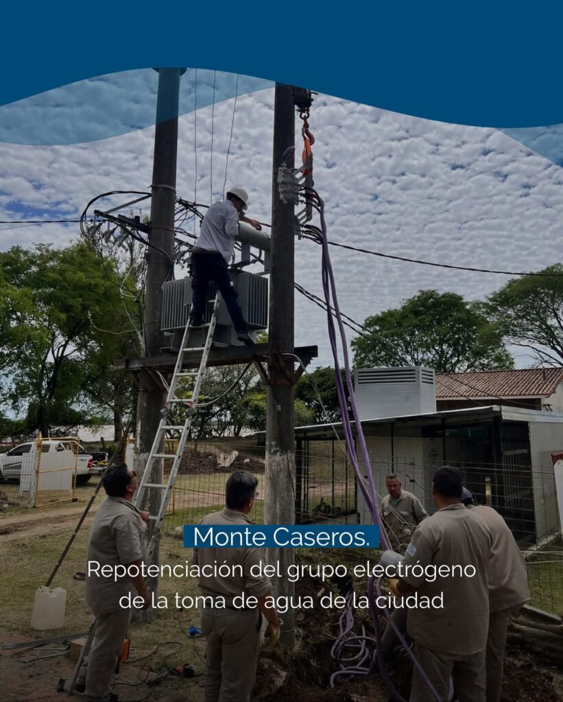 En Monte Caseros, la empresa Aguas de Corrientes llevó adelante la repotenciación del sistema eléctrico de la toma de agua, mediante la incorporación de un nuevo grupo electrógeno de 440 kVA, inversión que garantiza mayor confiabilidad y continuidad del servicio para toda la comunidad.
