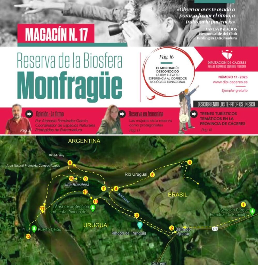 Barra do Quaraí ha ganado exhibición internacional con las noticias sobre la implementación del Corredor Biológico Trinacional, un innovador proyecto que involucra a Brasil, Argentina y Uruguay en la protección de la biodiversidad y la promoción del turismo sostenible en la región de la Triple Frontera. La iniciativa quedó de relieve en el número 17 de la revista Reserva de la Biosfera Monfrague del Parque Nacional de la Monfrague Biosfera, que se encuentra en el norte de la provincia de Cáceres (Extremadura), en el triángulo imaginario formado por las ciudades de Cácers, Plasencia y Trujillo, en España.