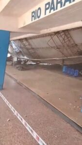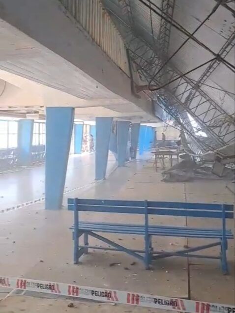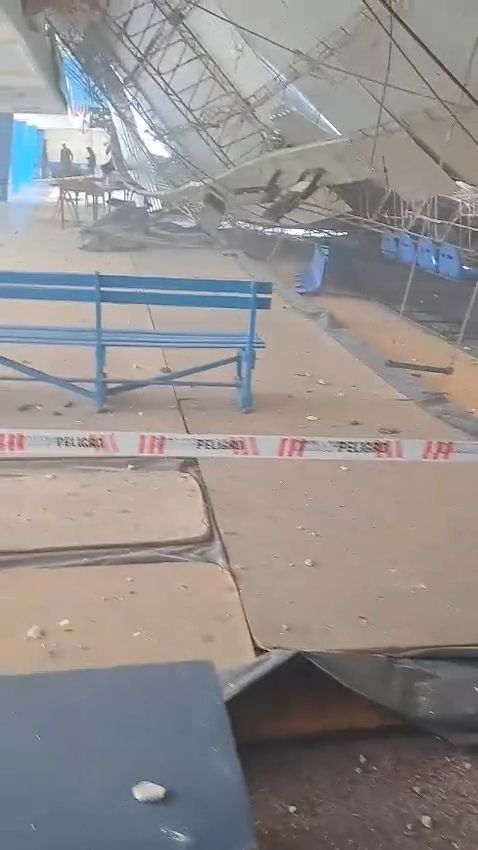 En horas de la siesta de hoy, parte del techo del Club Regatas en Corrientes se desplomó, afectando principalmente el sector de la cancha de básquet.