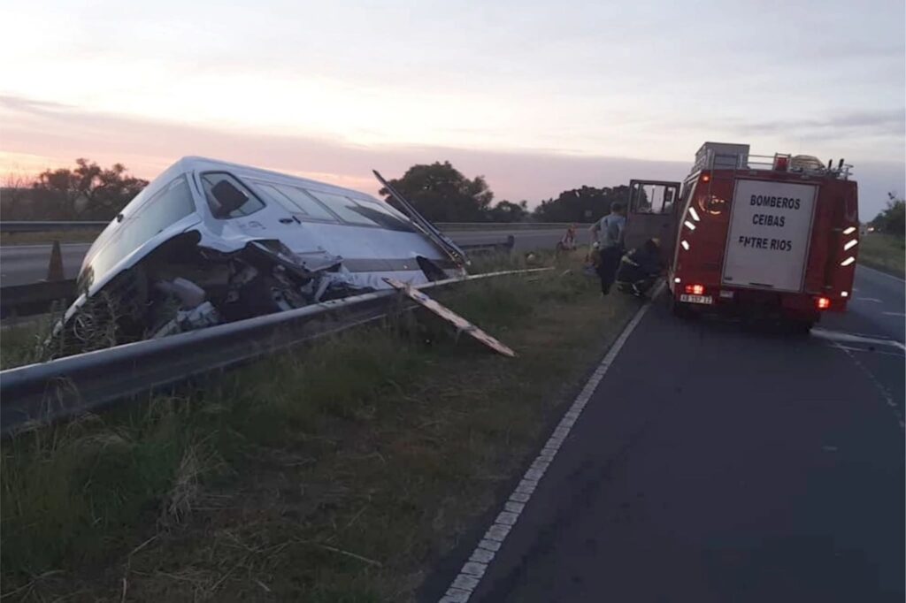 En la madrugada de este martes, una combi que se dirigía desde la provincia de Buenos Aires hacia la ciudad de Federación, Entre Ríos, despistó en el kilómetro 159 de la Autovía 12, en cercanías de Ceibas.