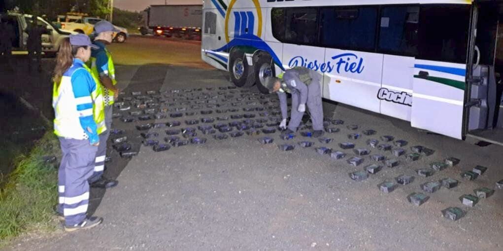 Efectivos pertenecientes al ESCUADRÓN 57 “SANTO TOME” se encontraban desarrollando Actividades de Prevención Vial y Control sobre la Ruta Nacional Nº 14, momentos en los que detuvieron la marcha de un transporte de pasajeros que trasladaba a un tour de compras proveniente de la ciudad de San Vicente (Misiones).