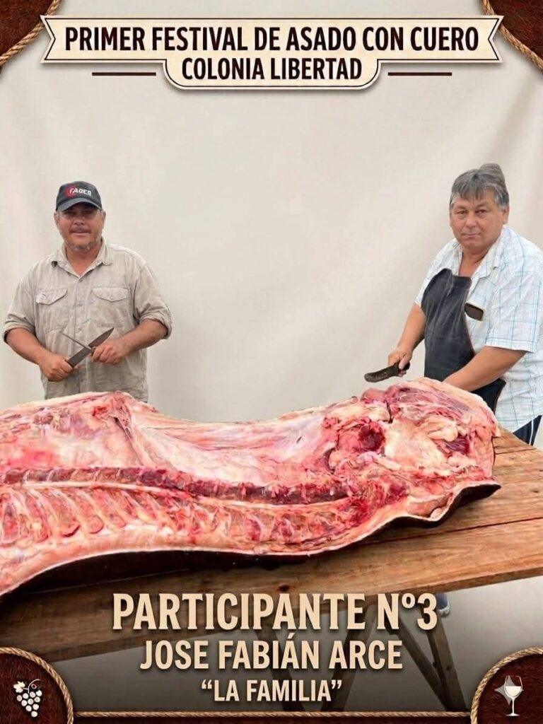 En el marco del festival que celebra las tradiciones y la gastronomía regional, se dio inicio a la esperada competencia del Asado con Cuero, uno de los momentos más destacados de la jornada en Colonia Libertad.