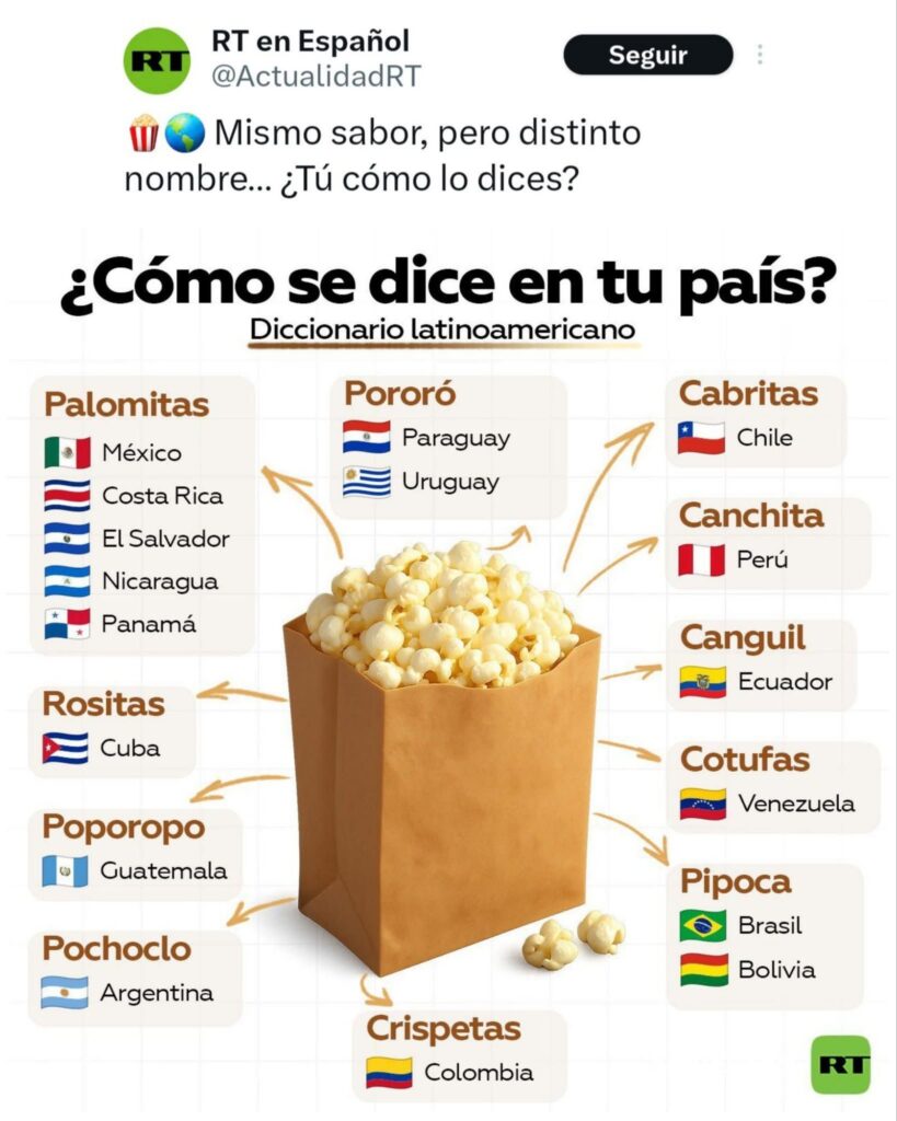 Un alimento, muchos nombres. Así ocurre con el maíz inflado que disfrutamos en cines, reuniones y momentos de ocio: dependiendo del país, puede llamarse de formas muy distintas.