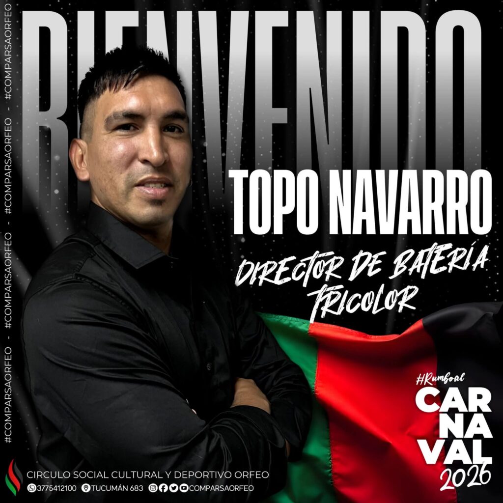 Comparsa Orfeo oficializó la incorporación de Topo como nuevo Director de la Batería Tricolor, de cara al Carnaval 2026. Su llegada representa un importante paso en la preparación artística y musical de la agrupación.
