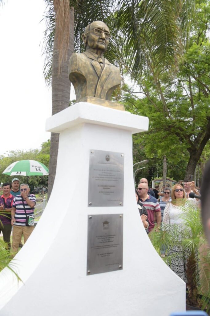 El vicegobernador, Pedro Braillard Poccard, junto al intendente Eduardo Tassano, encabezó el acto que se realizó en el acceso al Parque Mitre, donde se descubrió un busto en memoria de don Eduardo Seferián, quién como dirigente y empresario dejó su huella en la comunidad correntina y “nos dio el sueño de tener el fútbol grande en Corrientes”.