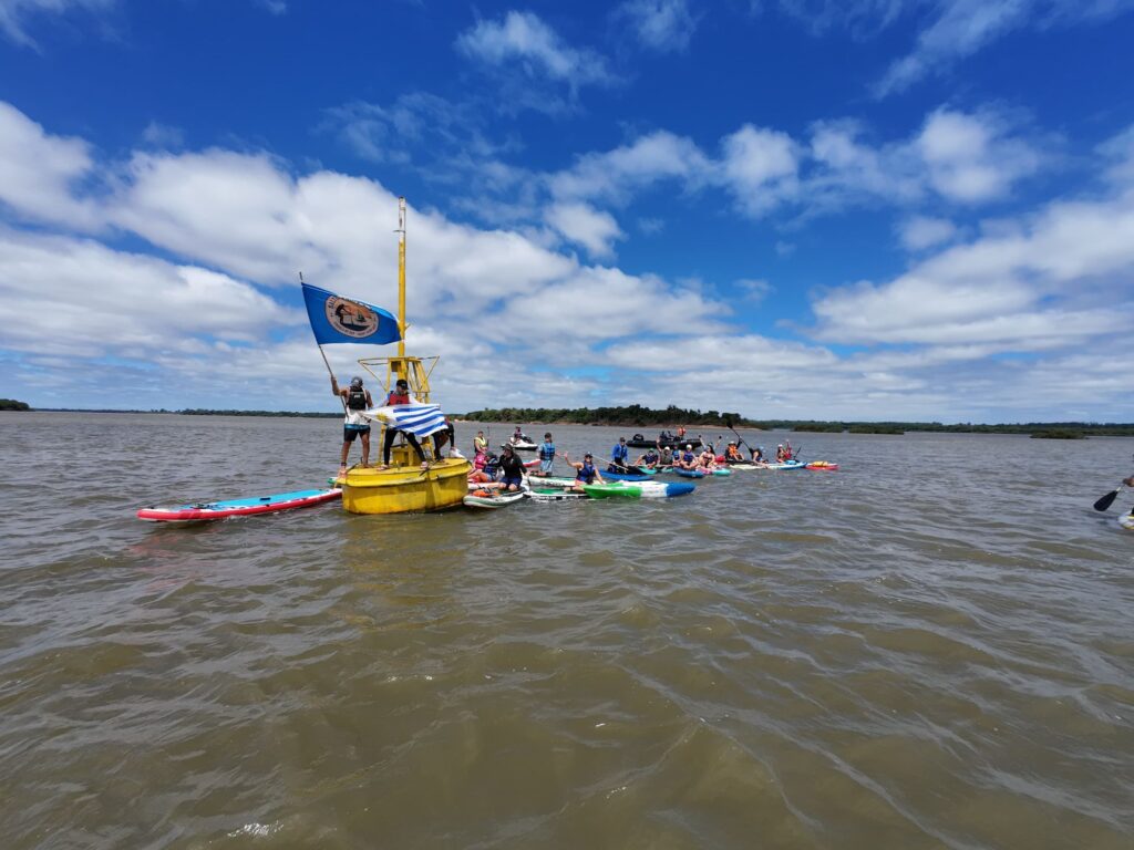 En total participaron alrededor de 20 tablas de SUP Paddle, además de numerosos kayaks y canoas, conformando un importante grupo de remeros que disfrutó de una jornada deportiva, recreativa y de integración entre los tres países.