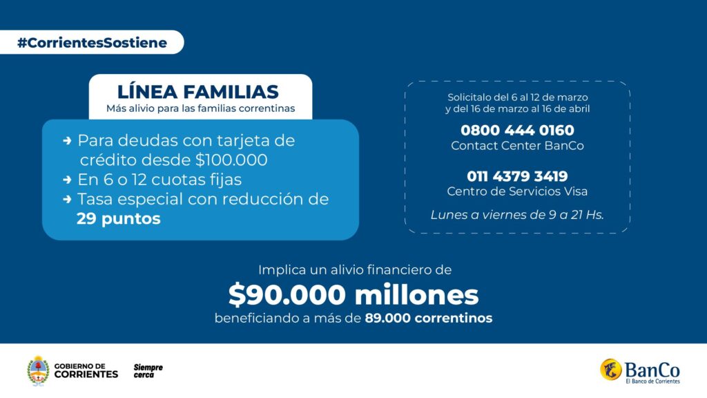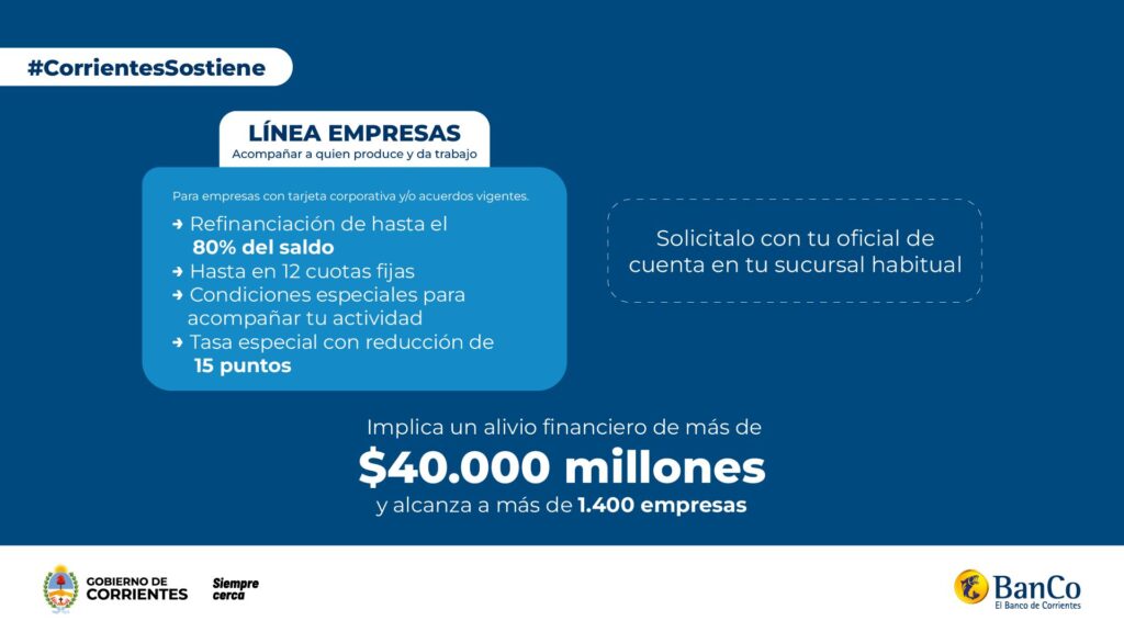 Esta iniciativa generará un alivio financiero estimado en más de $40.000 millones, beneficiando a más de 1.400 empresas correntinas. Las solicitudes deberán gestionarse a través de las sucursales del banco, con el oficial de cuenta habitual.