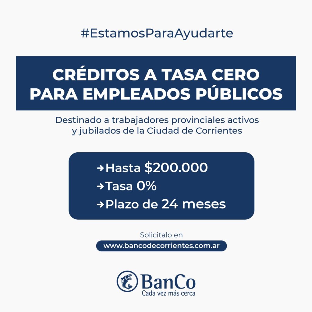 El anuncio fue realizado por el gobernador Gustavo Valdés, a través de sus redes sociales. El préstamo abarca a todos los empleados públicos provinciales de la Capital, tanto activos como jubilados. A través de la web www.bancodecorrientes.com.ar, podrán solicitar hasta $200.000 a tasa cero, en un plazo de 24 meses.