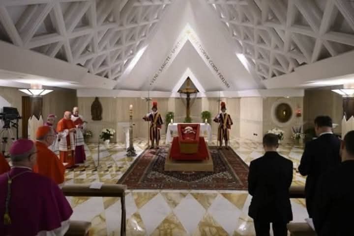▪️El Vaticano divulgó las primeras imágenes del Papa Francisco en su ataúd. El Sumo Pontífice fue colocado en un sencillo cajón de madera, distinto al tradicional de roble y ciprés utilizado en otros funerales papales.