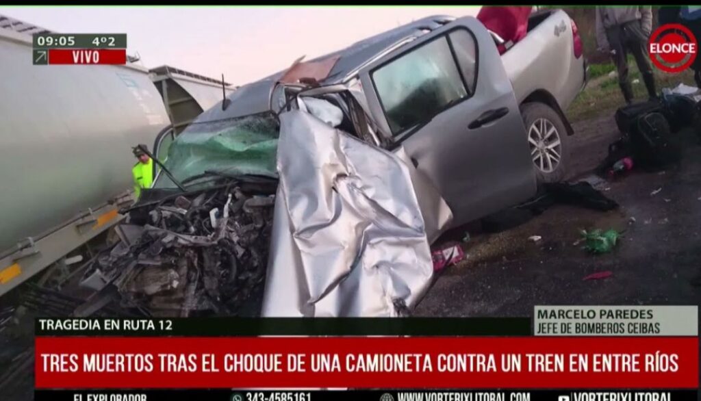 En la madrugada de este sábado se registró un trágico siniestro vial en la Ruta Nacional 12, provincia de Entre Ríos, donde una camioneta colisionó violentamente contra una formación ferroviaria.