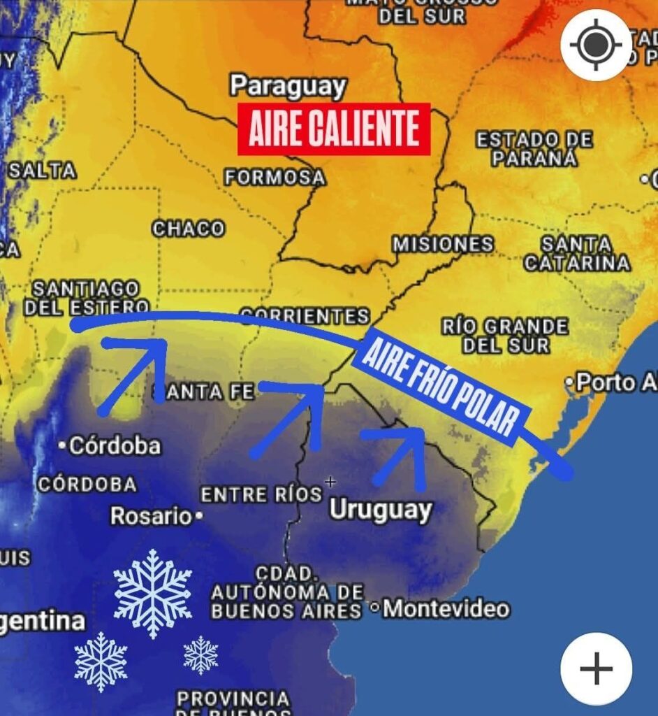 Un frente frío de características “secas” ya comenzó a avanzar durante la tarde de este domingo sobre la región del litoral, extendiéndose hacia zonas de Brasil, Uruguay y Argentina.