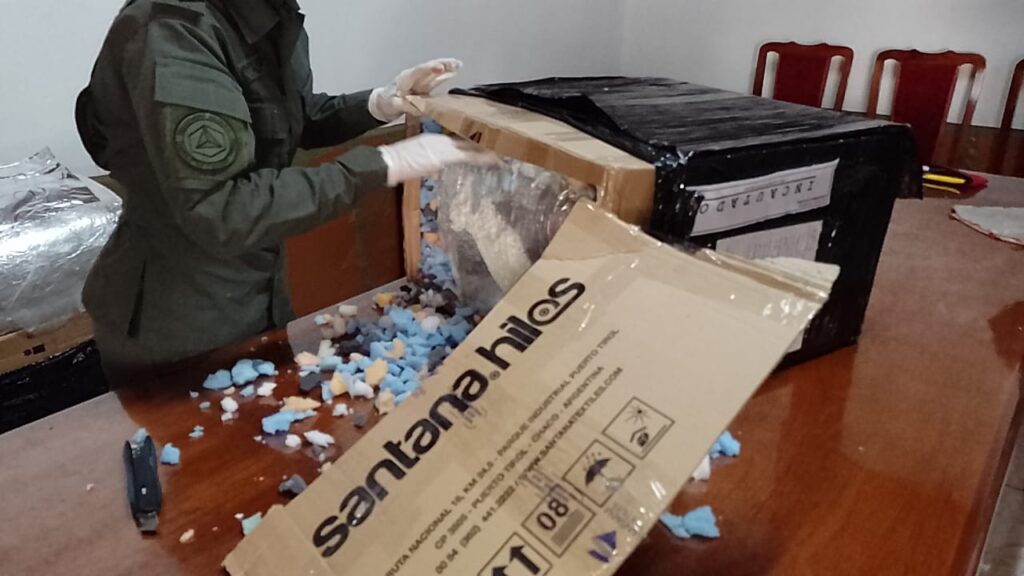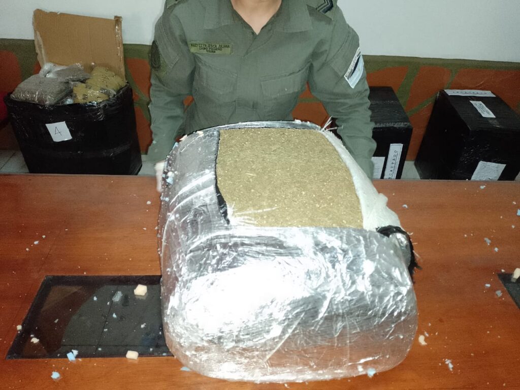 En horas de la tarde el personal aperturó un total de 4 bultos, que constaban de cajas de cartón, dentro de los cuales se encontraban acondicionados 38 paquetes de diferentes tamaños, que contenían una sustancia vegetal amarronada, cuyas muestras arrojaron resultado positivo para “Cannabis Sativa” luego de haber sido sometidas a test químicos de campo por parte de personal de Criminalística y Estudios Forenses de la Unidad, con un peso total de 61,297 kg.