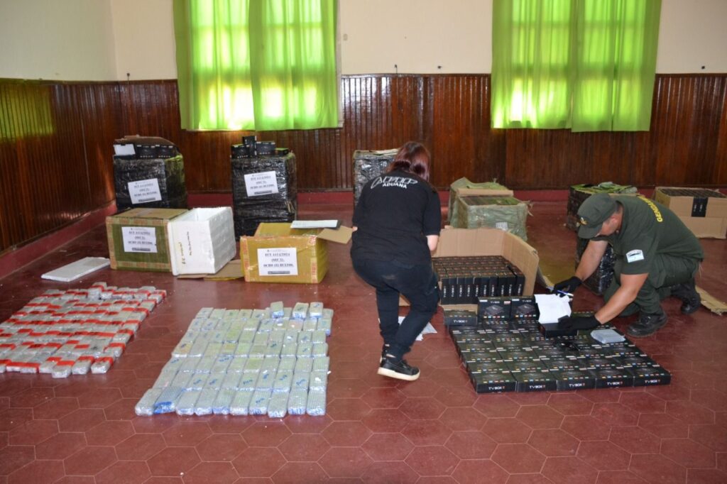 Informado de los hechos, y con la autorización correspondiente por parte del Juzgado Federal y la fiscalía Federal de Paso de los Libres, se procedió con la requisa de 35 bultos, dentro de los cuales se encontraron 8.810 paquetes de cigarrillos, 140 módulos para teléfonos celulares, 790 dispositivos convertidores para TV y 414 perfumes.