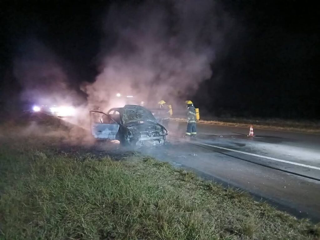 Un automóvil se incendió completamente este viernes por la tarde mientras circulaba por Ruta Nacional 14, en el kilómetro 335, carril Sur-Norte, sobre la banquina Este. El vehículo siniestrado es un Honda Civic EX, cuyo propietario es oriundo de la ciudad de Mocoretá, departamento Monte Caseros, provincia de Corrientes.