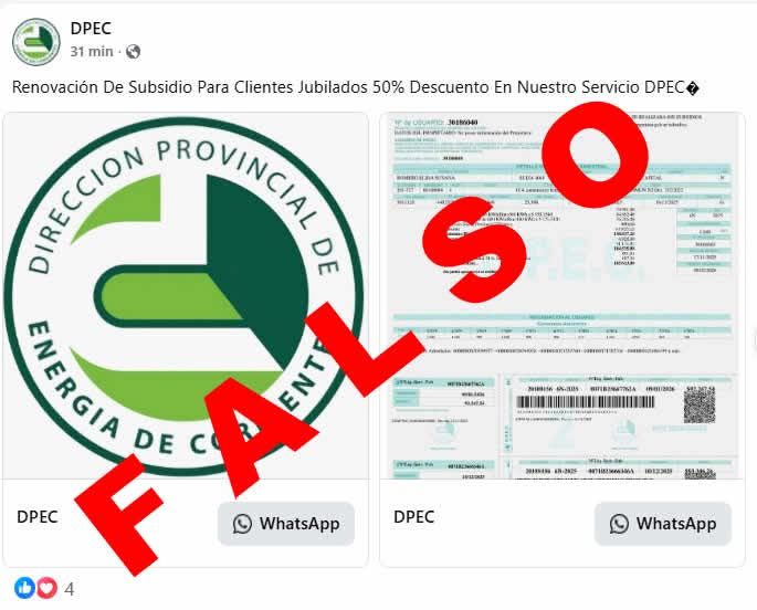 Ante la reciente circulación en redes sociales de publicaciones que anuncian supuestos beneficios o descuentos destinados a jubilados, la Dirección Provincial de Energía de Corrientes (DPEC) informa y desmiente categóricamente dicha versión.