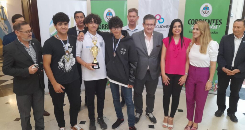 En primer lugar al equipo de Ajedrez de la Escuela Técnica «Pedro Ferré» quien se consagró Subcampeona en la «Gran Final» (al cual habían accedido al consagrarse campeona provincial del torneo anterior). Nuevamente los alumnos de la Escuela Técnica tuvieron una labor más que excelente igualando la línea de puntaje del equipo campeón el Colegio Secundario de Riachuelo, pero quedado en segundo lugar por sistema. El equipo subcampeón formó en el 1er tablero con Guillermo Silva 2do tablero Javier Silva y tercero Pablo Gomez. Felicitaciones también al equipo del Instituto Presbítero Demetrio Atamañuk: 1er tablero Milena Astorga, 2do tablero Cielo Guardia y 3er tablero Álvaro Carlino y al equipo de la Escuela Técnica sub-14: 1er tablero: Lionel Sanchez Miño, 2do tablero: Nicolás Liz y 3er tablero: Ulises Rodriguez ambos equipos participaron en gran nivel de esta gran final a la que accedieron sólo los 8 mejores equipos de la provincia. 🏆 Felicitamos a los ganadores del encuentro de ajedrez educativo «Jóvenes por la Paz» 🥇 Colegio Secundario San Cayetano 🥈 Escuela Técnica Pedro Ferré de MonteCaseros 🥉 Colegio Secundario Cnel. José Armand de Riachuelo. Y por último y no menos importante agradecemos al intendente Juan Carlos Alvarez por conseguir el traslado de los alumnos y a la diputada Albana Rotela quien nos consiguió el almuerzo para toda la delegación casereña. Además de acercarse y saludar a cada uno de nuestros jóvenes talentos MUCHAS GRACIAS!!