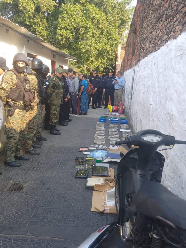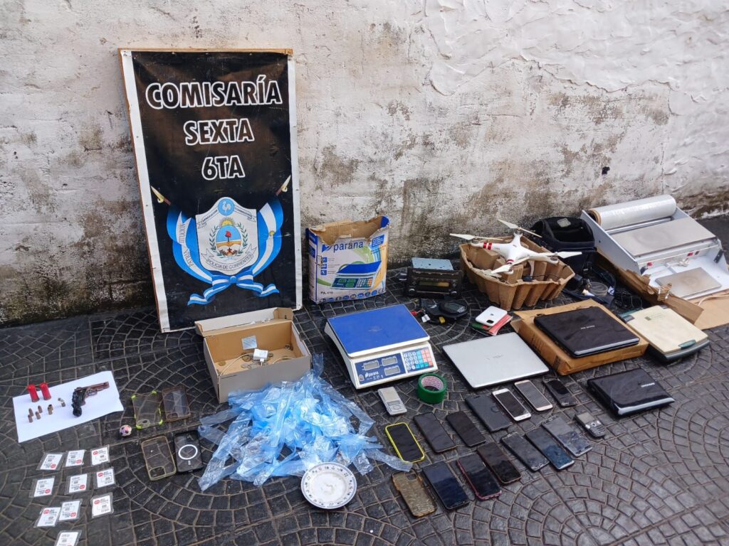 También procedieron a la demora de cinco personas, tres hombres y dos mujeres y al secuestro preventivo de varias cosas como ser: balanzas de precisión, un arma de fuego, y varios proyectiles, entre otras cosas.