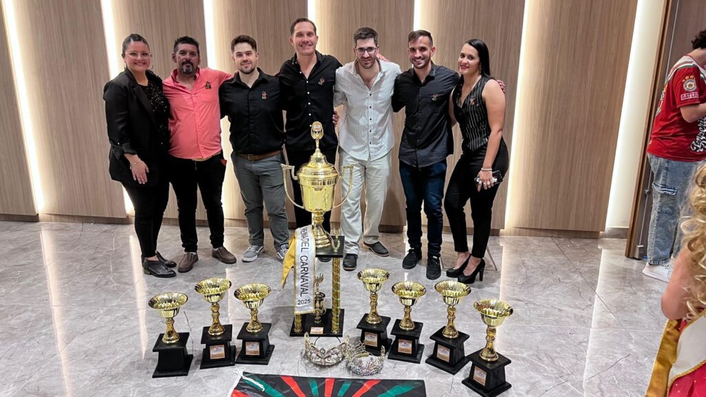 La comisión presidida por Lujan Rodríguez, el diseñador Juan Blanco, la directora de la Escuela de Samba Araceli Fucenecco, carroceros, bailarines y confeccionistas de trajes en representación de esta gran institución y familia participaron de otra noche más que mágica, llena de esfuerzo que llevaron a la doble consagración.