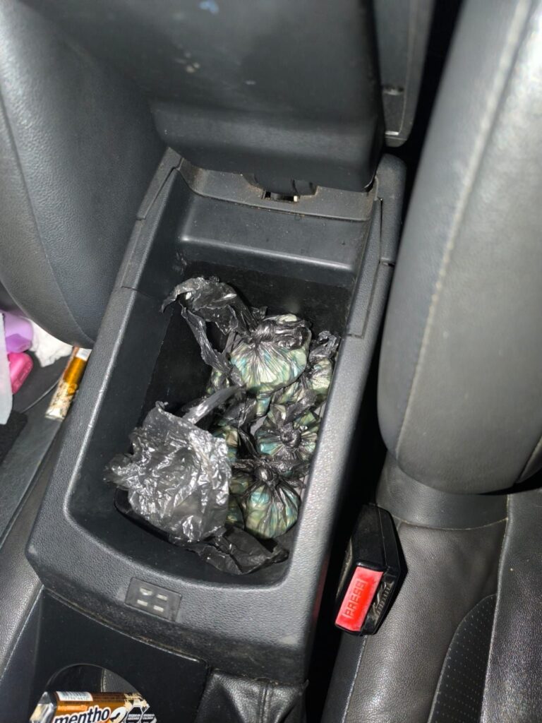 Del control físico y documentológico del rodado surgió que, ocultas dentro del apoyabrazos ubicado entre los dos asientos delanteros, se encontraban siete bolsas plásticas conteniendo numerosas pastillas.