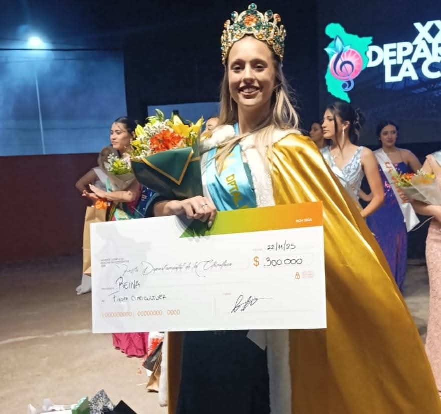 Durante la velada, se llevó a cabo la esperada elección de la nueva soberana de la fiesta. Representando a la comunidad de Colonia San Gregorio, Martina Montenegro fue seleccionada como Reina 2025.