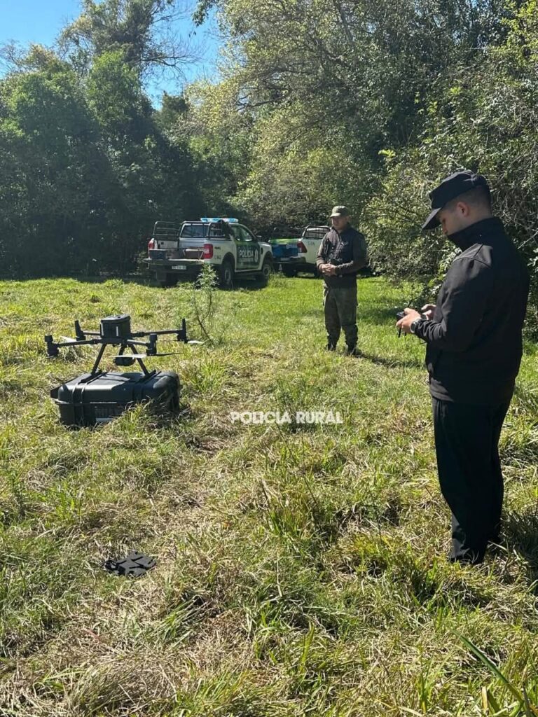 La Policía Rural y Ecológica, Gendarmería Nacional y Prefectura Naval Argentina coordinaron patrullajes por vía terrestre y fluvial, sumando tecnología de última generación con drones de la Policía de Corrientes y un avión de Prefectura que monitoreó el área desde el aire.