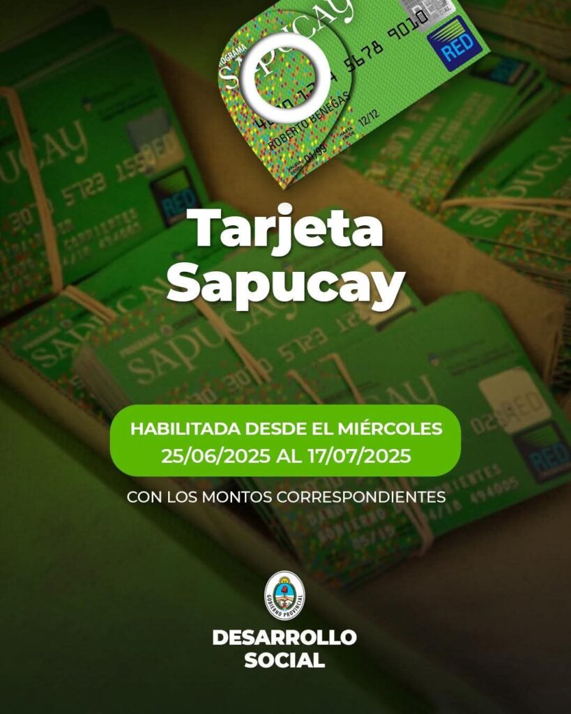 El Ministerio de Desarrollo Social informa que ya se encuentra habilitada la Tarjeta Sapucay, con los montos correspondientes, para ser utilizada por los beneficiarios en los comercios adheridos.