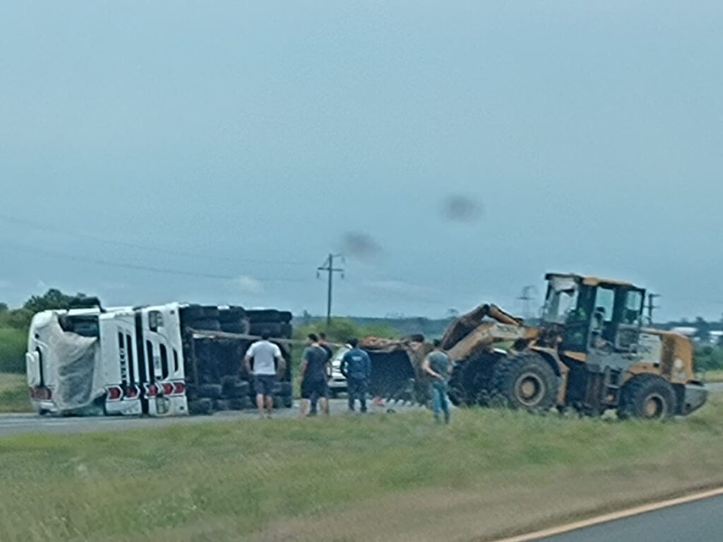 El camión es conducido por el Sr. H., Ariel domiciliado en Posadas -Mnes- . Afortunadamente no hubo personas lesionadas, en tanto al tránsito se encuentra cortado el carril lento.