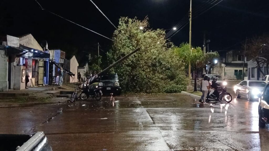 La intensa precipitación generó el anegamiento de varias calles, mientras que la caída de cables y árboles interrumpió la circulación en distintos puntos de la ciudad.