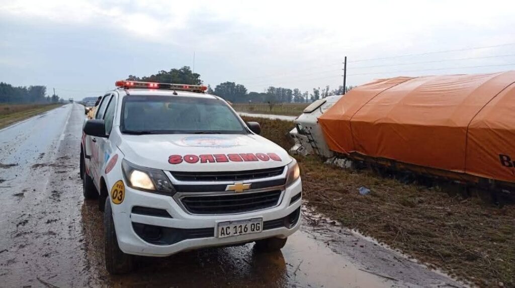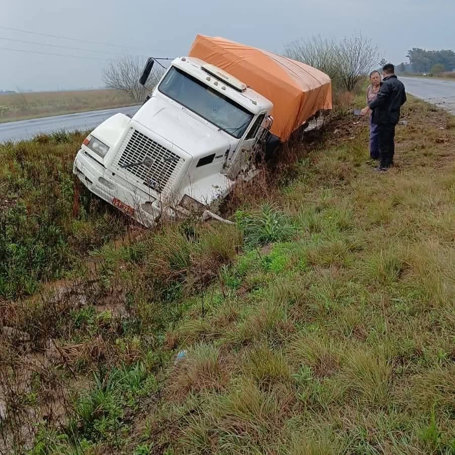 En las últimas horas, tres camiones de gran porte derraparon en el kilómetro 472 de la Autovía Nacional 14, a la altura de Bonpland, Corrientes. Las maniobras se habrían visto afectadas por la intensa lluvia y el deterioro del pavimento en ese sector.