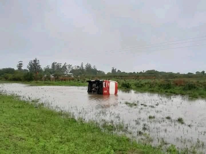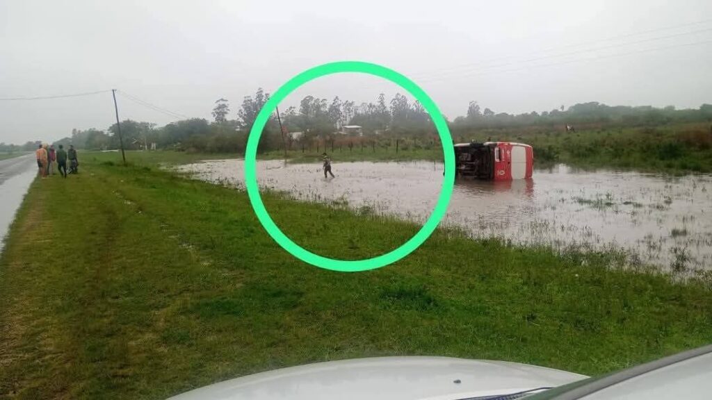 Según informó el propio chofer, el incidente se habría producido debido a un “espejo de agua” en la calzada, producto de las intensas lluvias registradas en la zona. Esto generó el despiste y posterior vuelco del rodado, que terminó en un área con importante acumulación de agua.