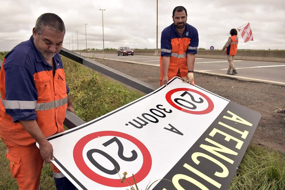 Informaron que, entre las tareas de mantenimiento, se realiza la instalación de señalización vertical y delineadores. Además, “banderilleros asisten el paso de vehículos de forma segura por los puestos de peaje que actualmente cuentan con las barreras levantadas”.