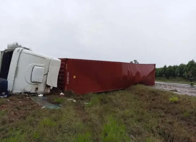 Amado Bonpland, Corrientes – Un camión que transportaba miles de botellas de vino volcó este martes sobre la autovía de la Ruta Nacional 14, a la altura de la localidad de Amado Bonpland, en medio de una persistente lluvia que habría contribuido al accidente.